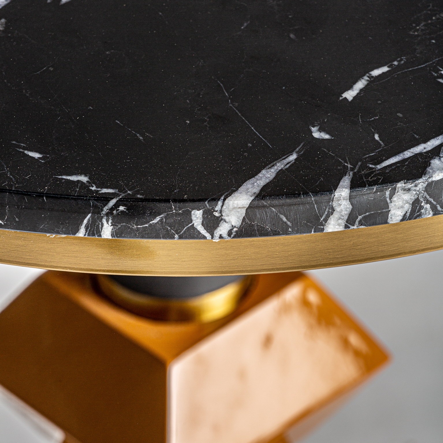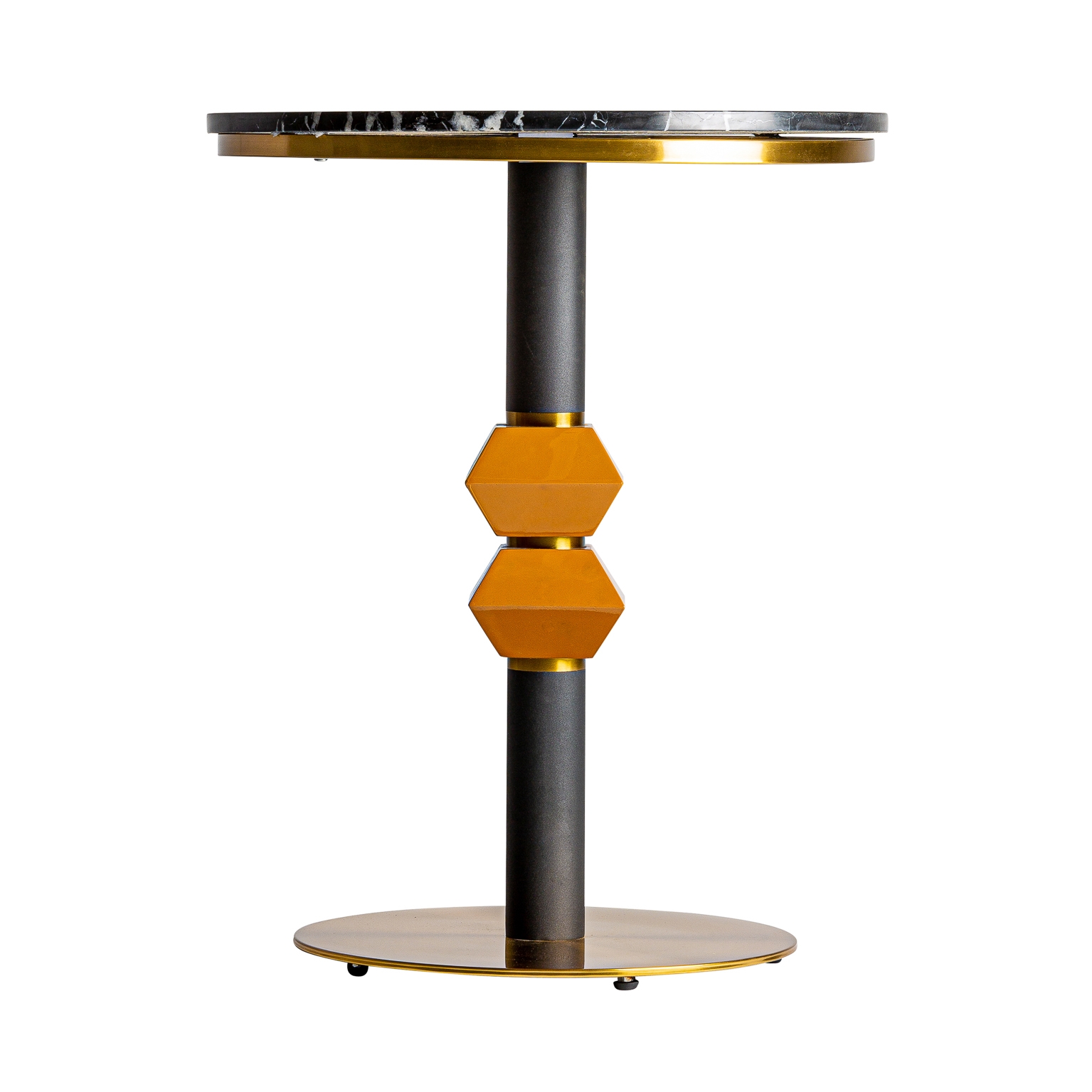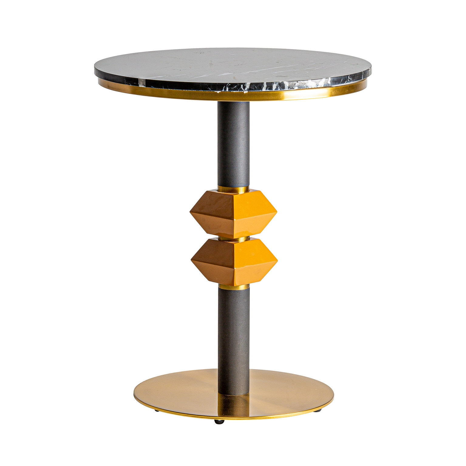 Masă de bar rotundă neagră/auriu din oțel și marmură Mielec.