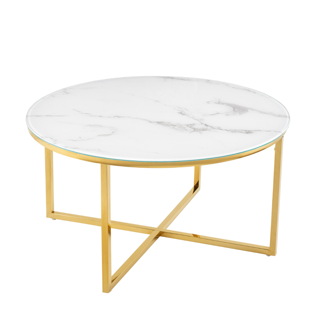 Masa de cafea aurie/alb din sticla si metal 80 cm Elegance