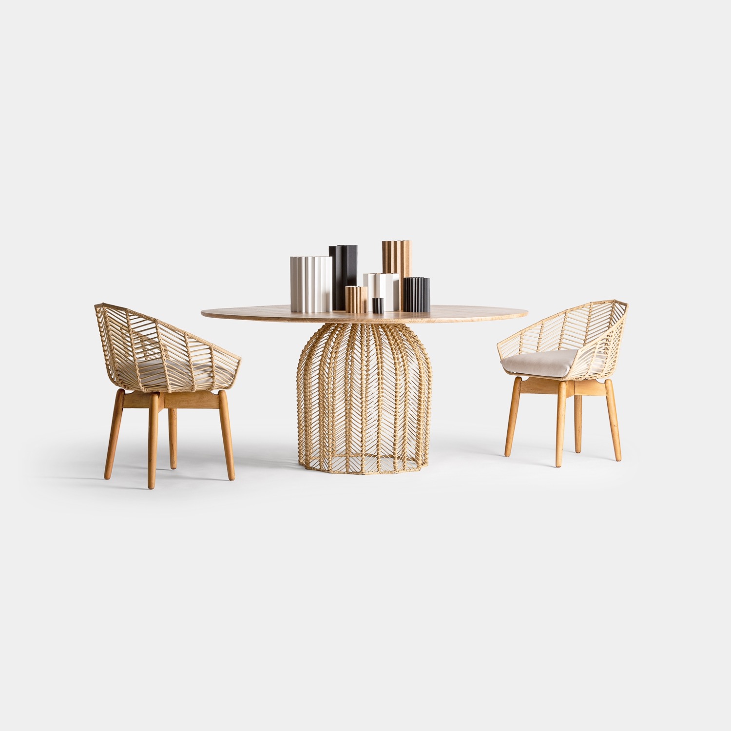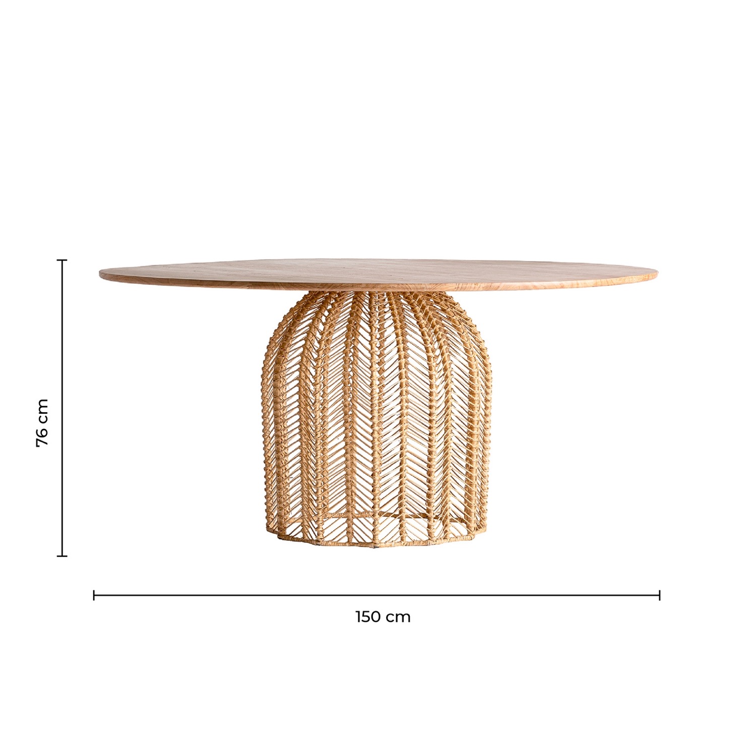 Masa dining maro din ratan și lemn de mahon 150 cm Plisse. VEZI COLECTIA PLISSE >>>