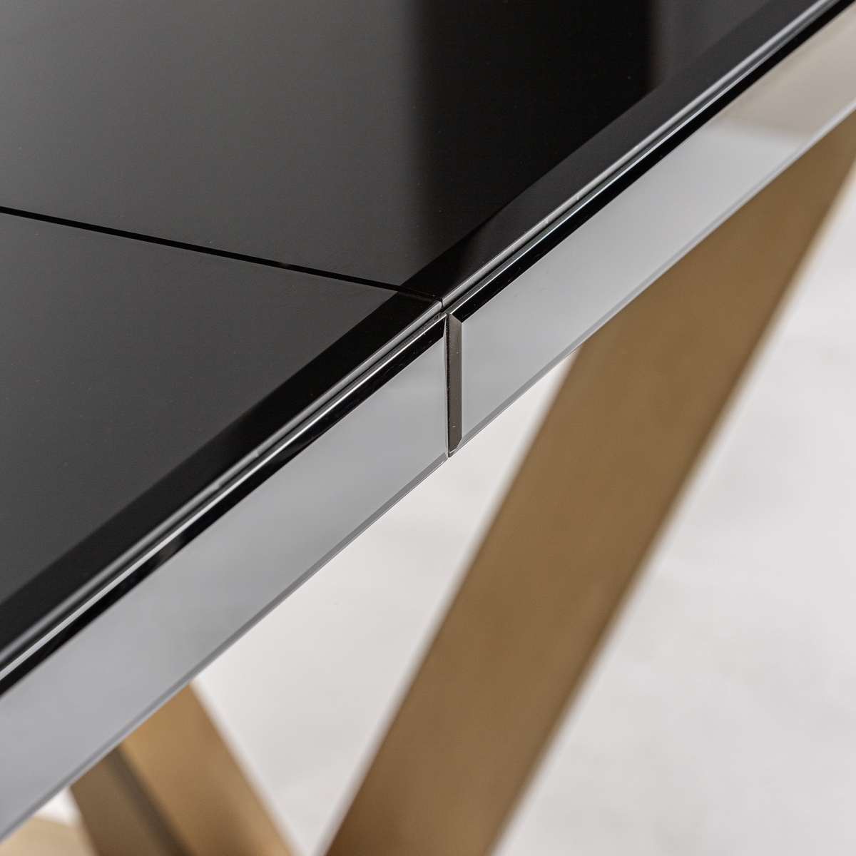 Masă dining neagra/aurie din sticlă și fier Lavis