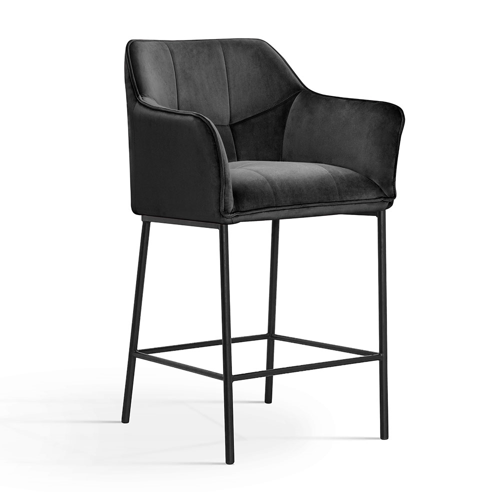 Modelul se caracterizează prin cotiere înalte. Cusăturile decorative pe spătar și o kedra de finisare adaugă o notă exclusivista. Scaunul de bar este realizat pe un cadru metalic si picioare din metal negru. Culoare disponibila picioare: negru.