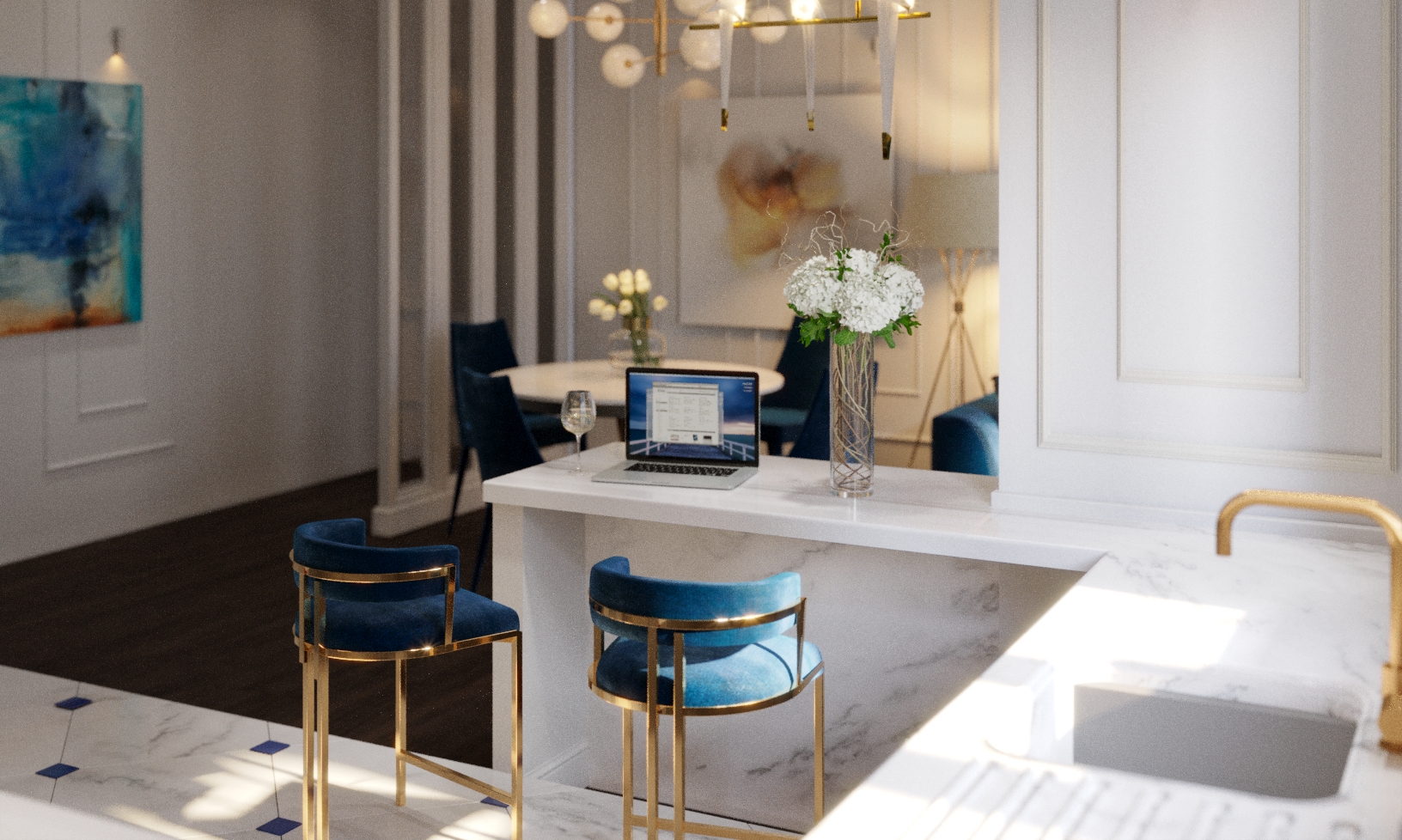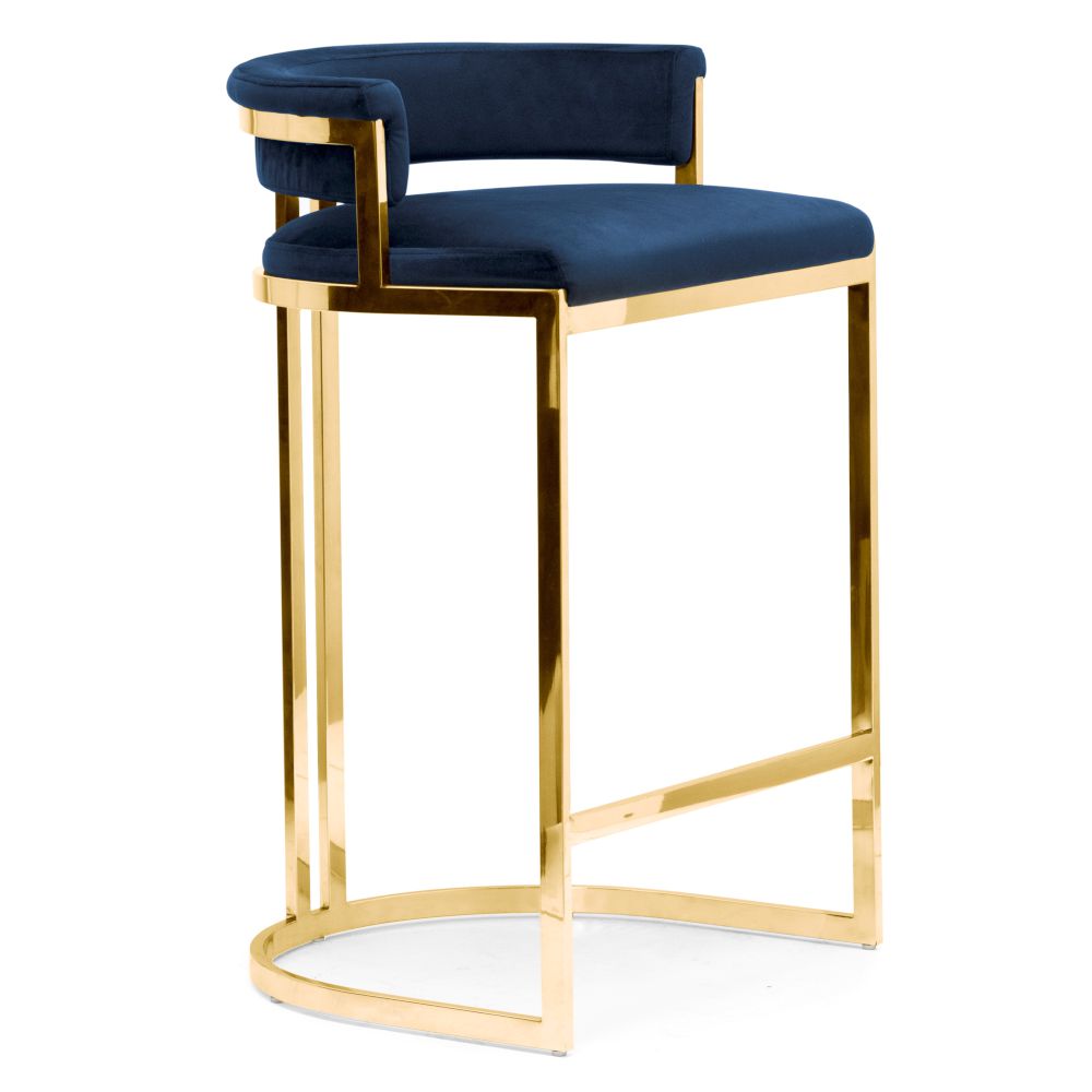Scaunul de bar Vegas din catifea este o piesă de mobilier modernă care dă grație camerei cu o notă de eleganță electrizantă. Tapițerie albastru închis și cadru auriu. Culoare disponibila cadru: auriu, auriu mat, argintiu.