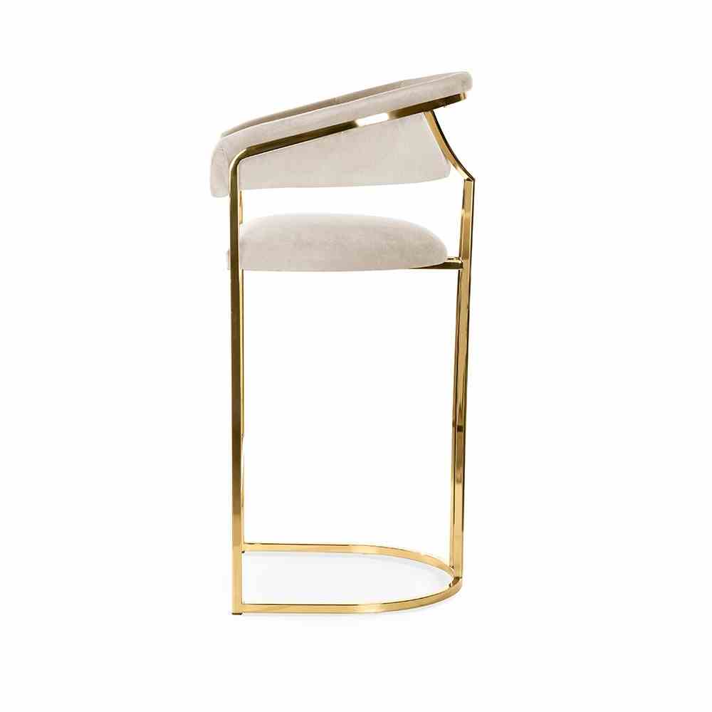 Scaun de bar bej/auriu din catifea Marcille 2