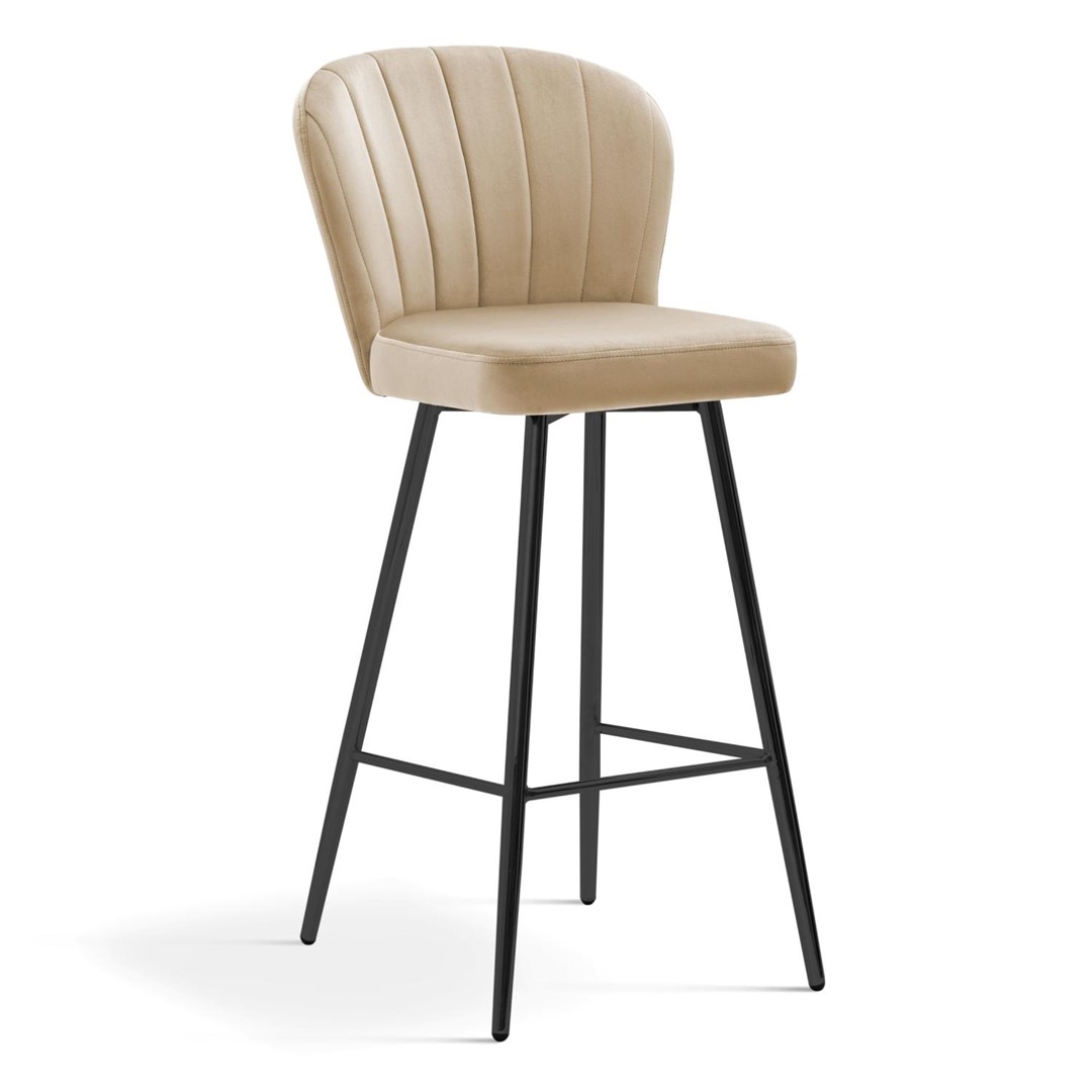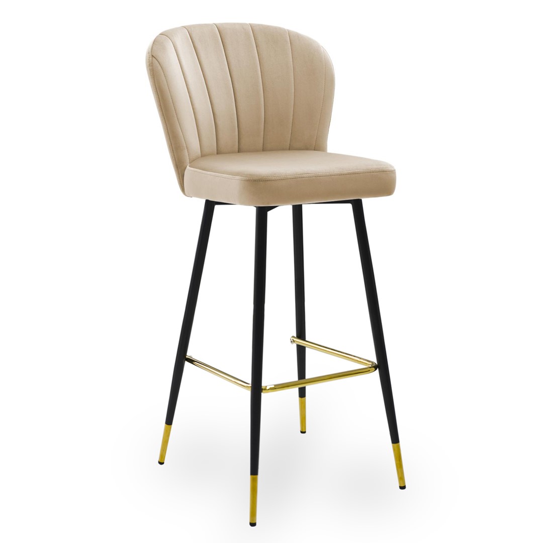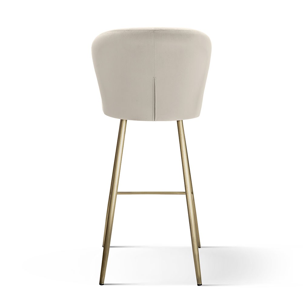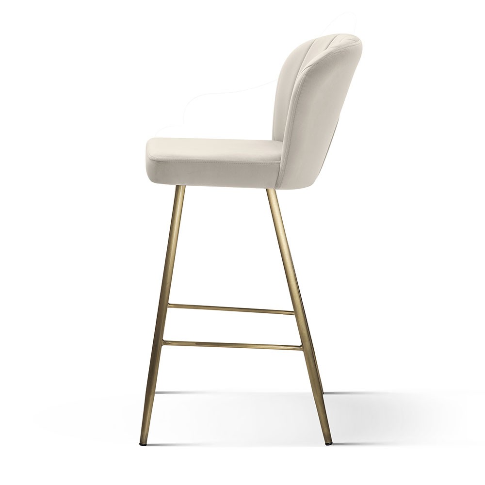 Scaun de bar tapitat în catifea realizat pe un cadru de lemn cu cusături pe spătar în formă de scoică. Scaunul de bar Shelly are picioare metalice. Culoare disponibila picioare: auriu, auriu mat, negru, negru/auriu, argintiu, natur.