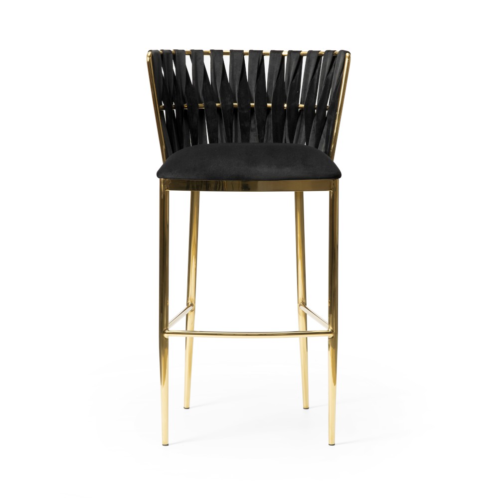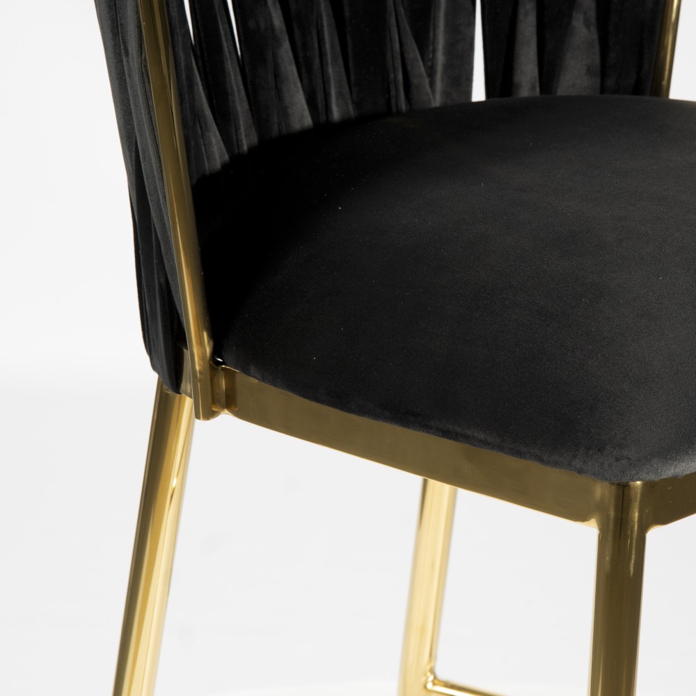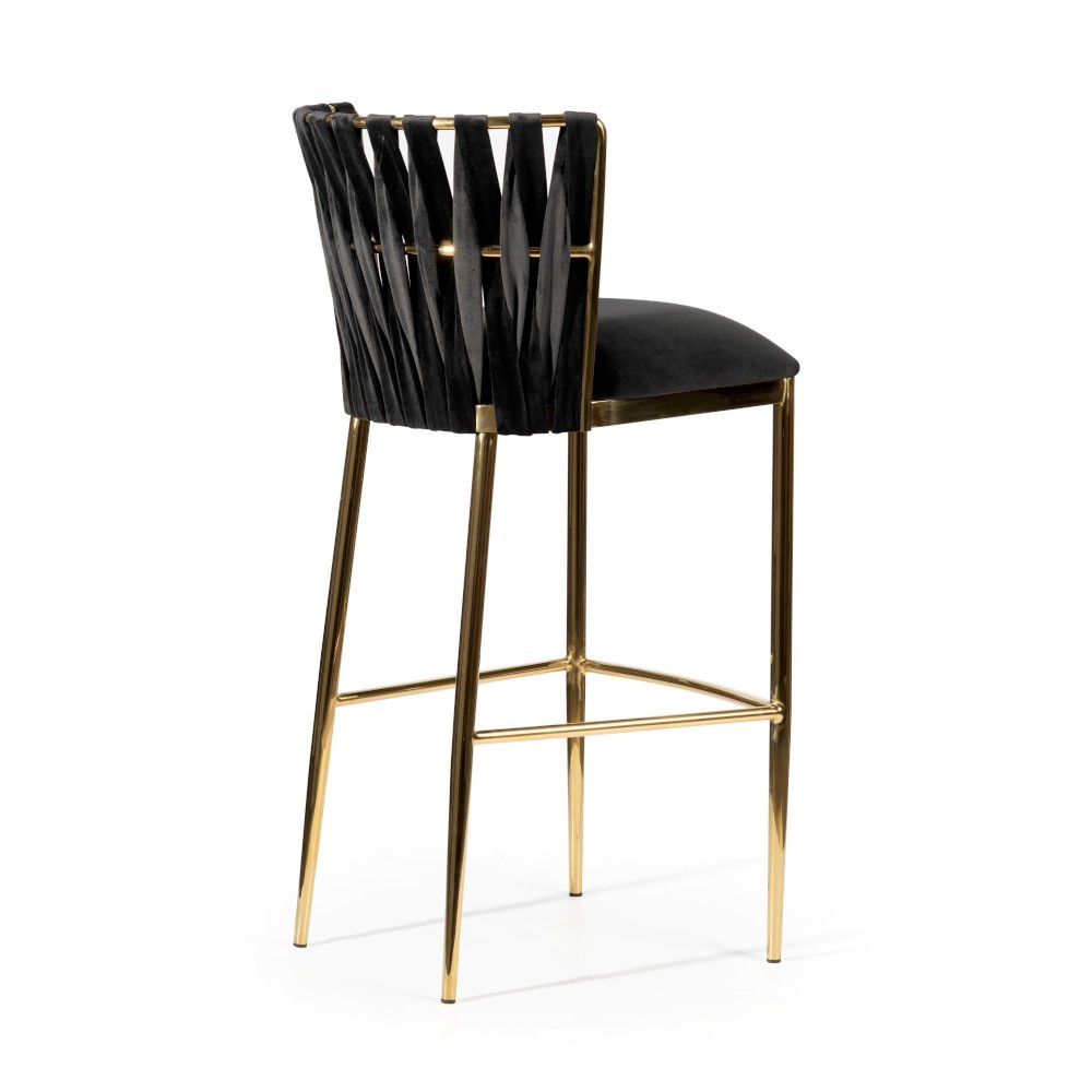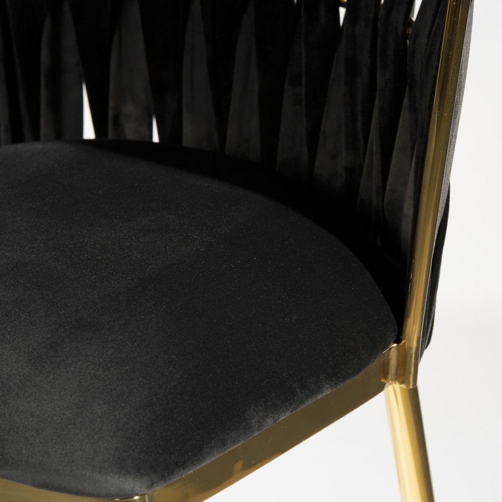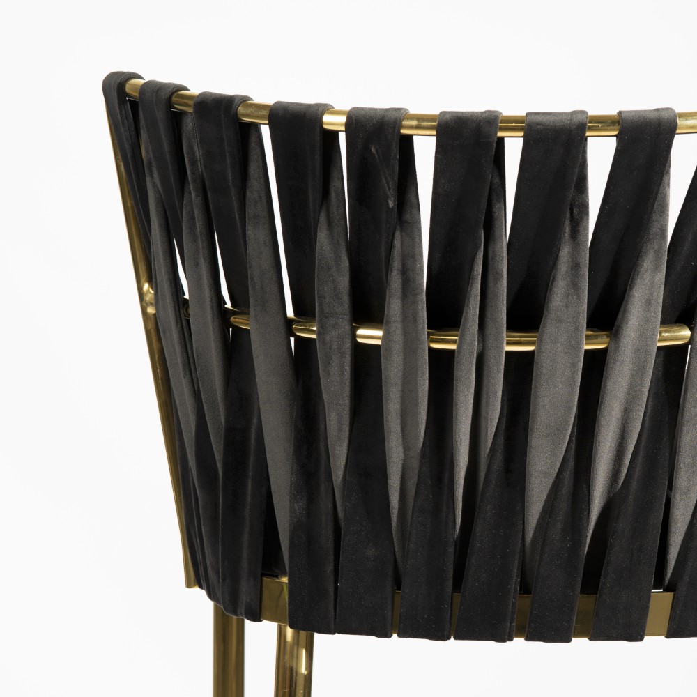 Hordia este un scaun înalt cu un design aparte. Picioarele înguste și o împletire modernă pe spătar dau un efect extraordinar de eleganță și stil. Scaunul este tapițat cu o țesătură de catifea. Informații suplimentare: realizat pe un cadru metalic. Culoare disponibila picioare: auriu, auriu mat, negru.
