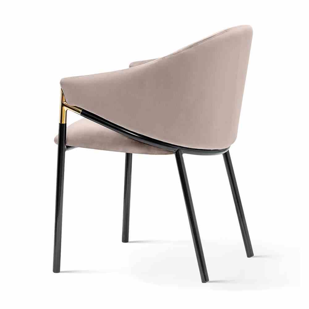 Principalul avantaj al scaunului este combinația unică de metal negru cu elemente aurii. Scaunul este tapițat cu material de catifea.