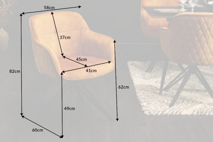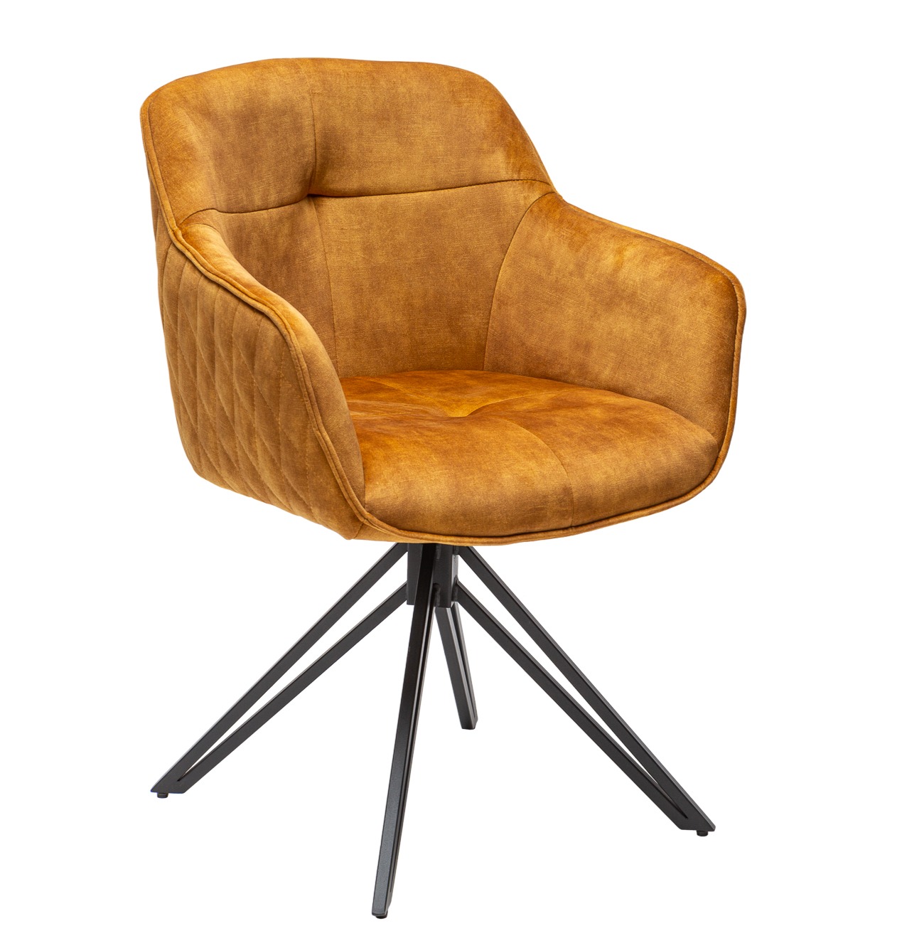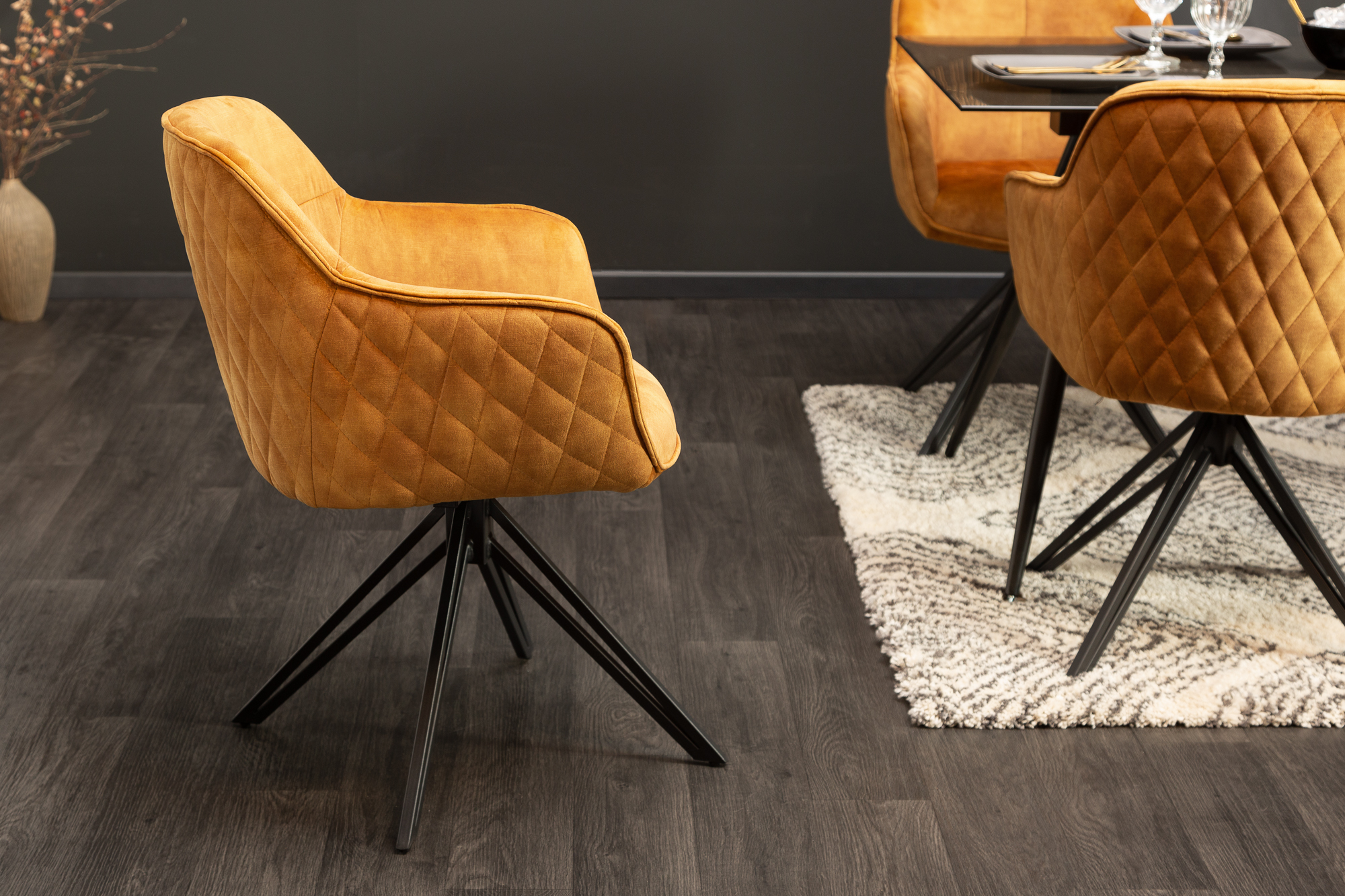 Scaun dining rotativ 180° din catifea galben mustar Euphoria